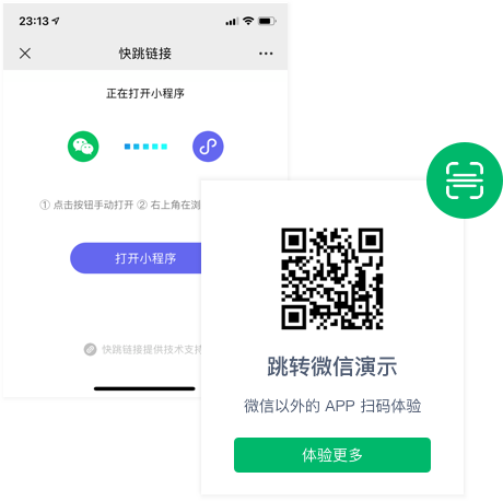 跳转微信工具平台部署在阿里云服务器,帮助每一位客户实现稳定的跳转微信工具小程序链接服务,拥有知识产权商标注册等资质,用跳转微信工具链接、安全稳定、值得信赖
